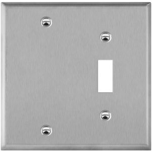 Combination Blank Device or Toggle Light Switch Metal Wall Plate, Corrosive Resistant, Size 2-Gang 4.50″ x 4.57″, 430 Stainless Steel, UL Listed, Silver