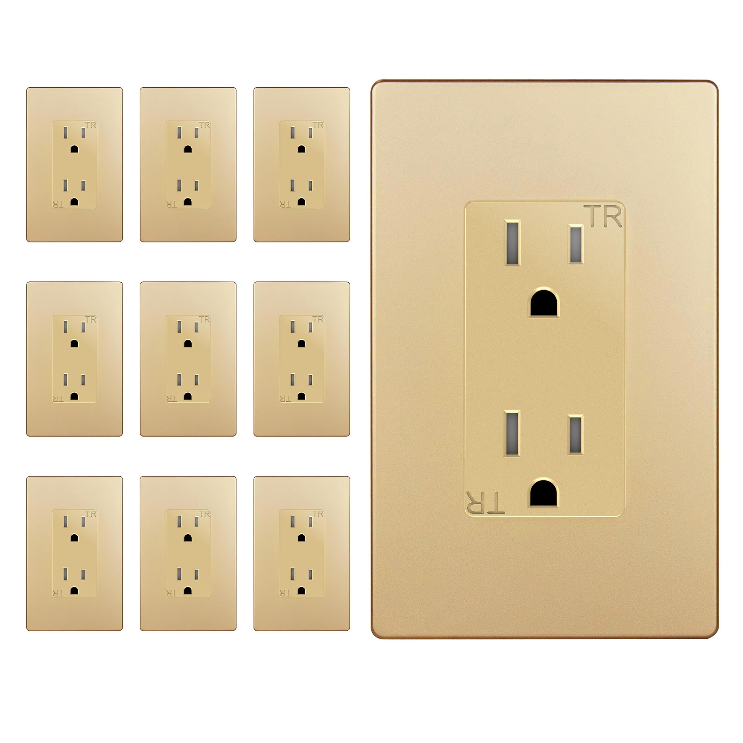 Enerlites Elite Series 61501-TR features two tamper-resistant outlets with a premium flushed finish. Designed to stand out and replace any standard wall outlets; Enerlites Elite Series has a premium metallic finish at an affordable cost. Use Elite Series receptacles to turn a simple afterthought into a standout environment. Compliment the outlet with our existing Elite Series screwless wall plates to complete the series. Coordinate throughout your home to make a statement. 10-Pack