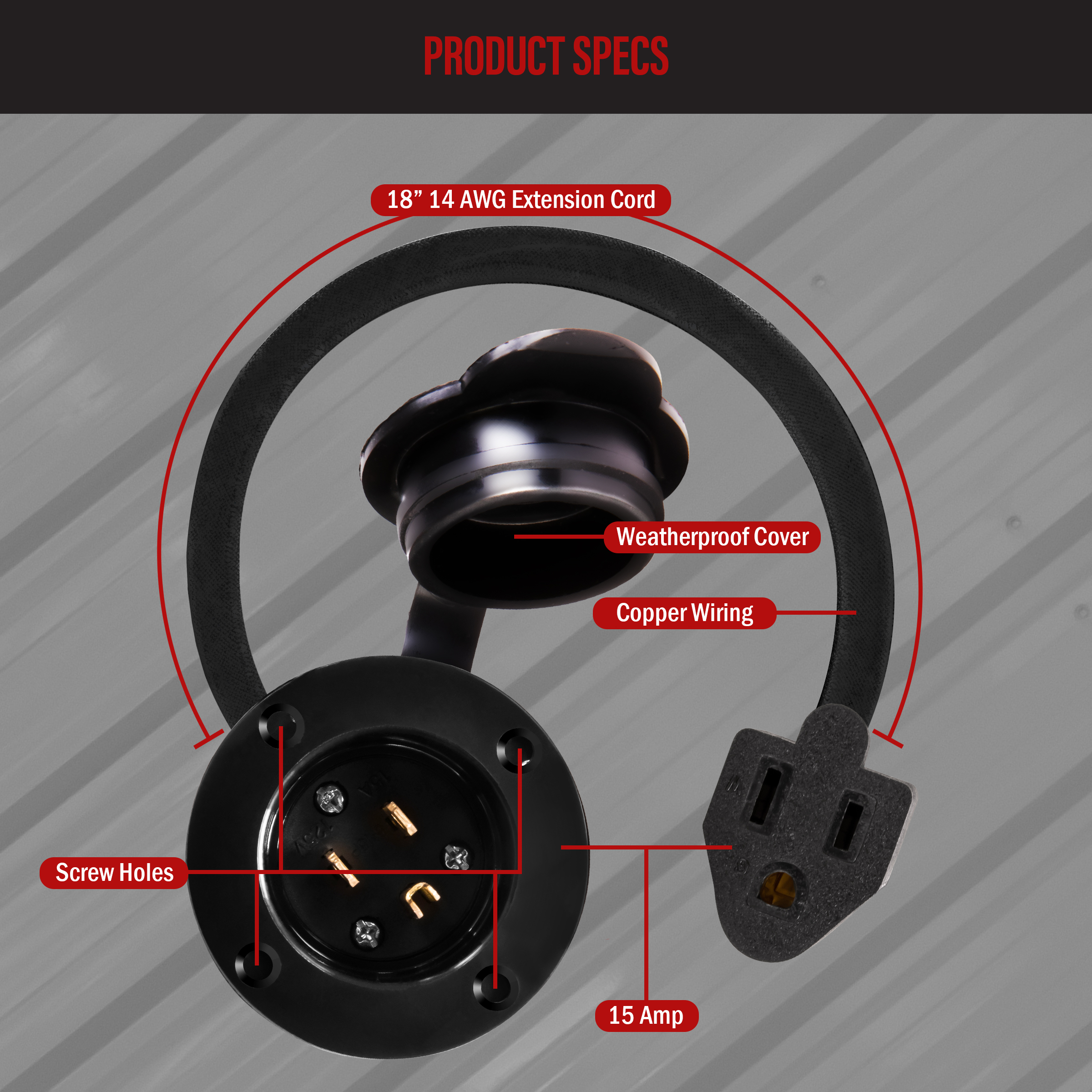 66205-BK offers an ultra-durable and reliable build, made from high-quality copper and tough nylon plastic. It features a waterproof cover to protect it from harsh, outdoor environments like rain or snow and can resist damage from UV degradation, severe impact, abrasion, and chemicals. Easy to install and doesn’t require special tools; no wiring is required. Quickly install using 4 screws to firmly fix the straight blade flange entrance in a hole or wall. There is no gap at the edge, as it’s designed to securely connect and provide a tight and leak-free connection. This male connector plug is equipped with a 14AWG 18-inch extension cord, which is suitable for a variety of applications and makes it user-friendly. Power plugs are widely used in RVs, campers, cars, trailers, boats, houses, generators, and more, to power your electronic devices. Black color; 15 amps (NEMA 5-15); 14AWG 18-inch extension cord; UL Listed This insert helps maintain a clean and safe environment by preventing dust accumulation and electrical exposure. Made from high-quality thermoplastic, it resists impacts and offers a long-lasting finish suitable for both residential and commercial applications.