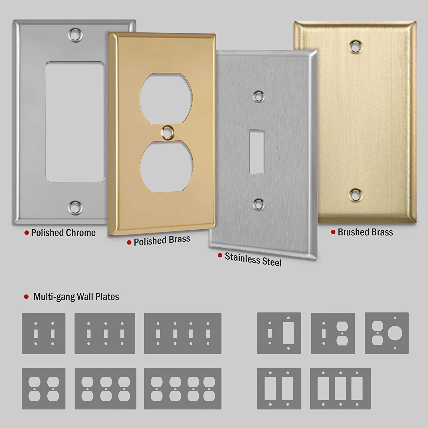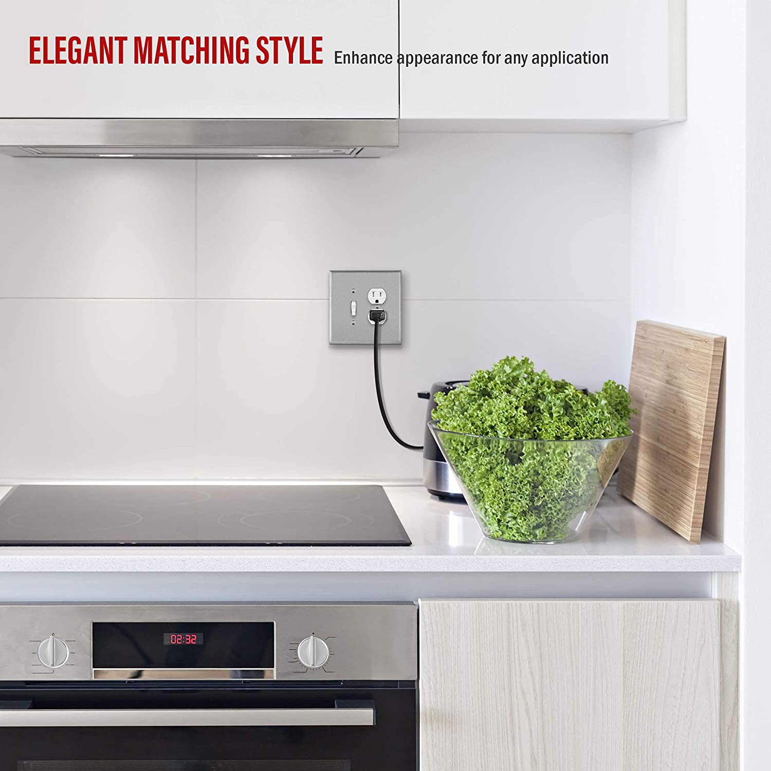 Enerlites wiring devices line of stainless steel wall plates are designed and manufactured to address a wide range of applications. The smooth finish and contoured edges of these stainless steel wall plates make them perfect for use in any workplace or home. Designed to provide safety and maintain an attractive appearance. Made without recessed lines for low maintenance, and easy cleaning.