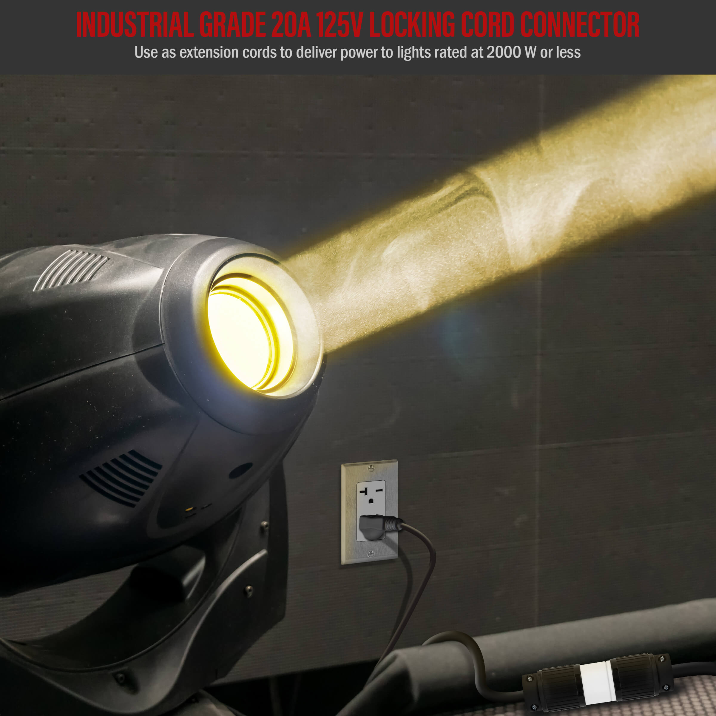 This NEMA locking cord connector is made of impact-resistant polycarbonate thermoplastic, making it highly durable in most applications. The NEMA configuration and device rating are clearly marked on the front. Use in combination with a NEMA L5-20P locking plug, such as Enerlites 66401-BK.