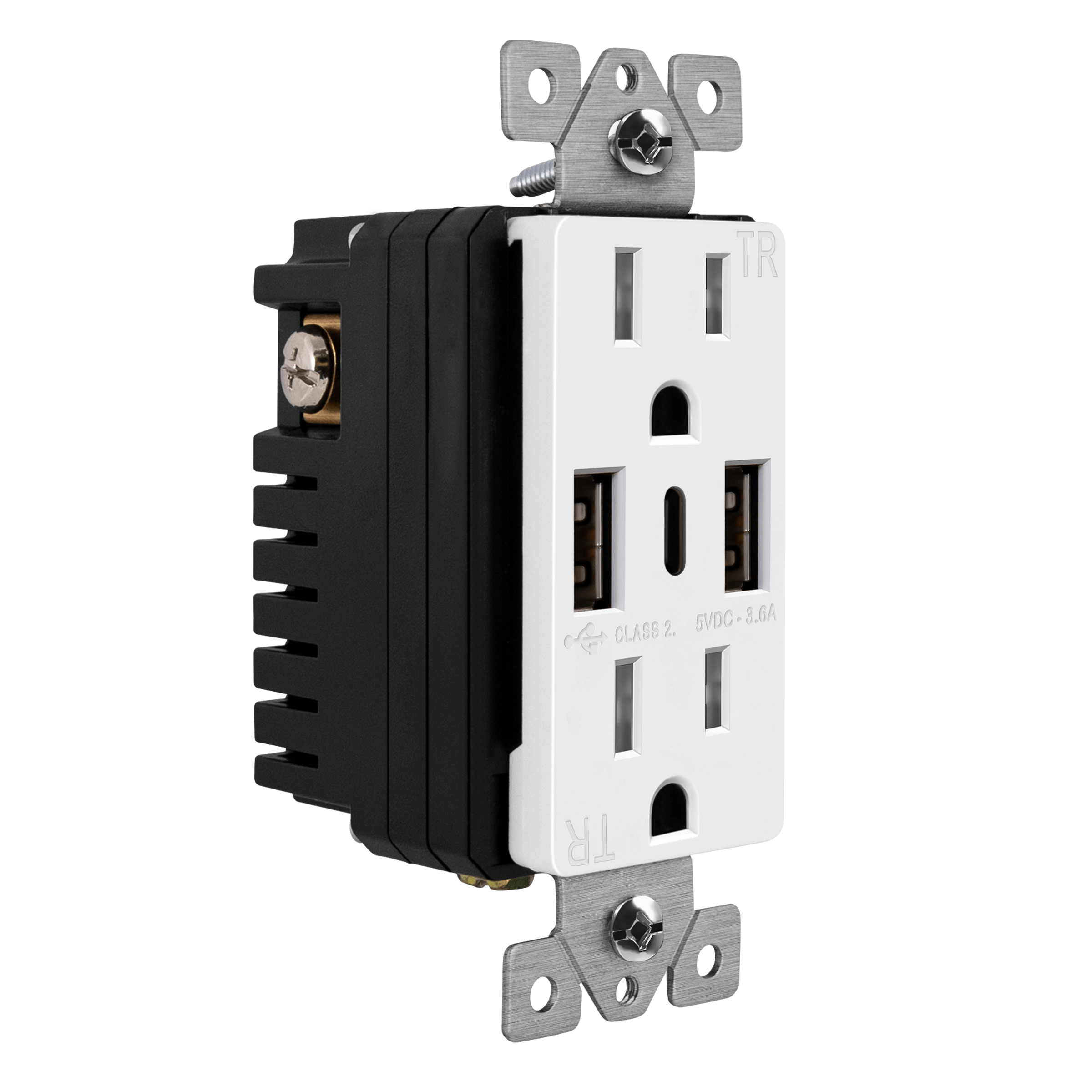 3.6A Triple Port USB-A/C Combo Wall Outlet with 2 USB-A ports