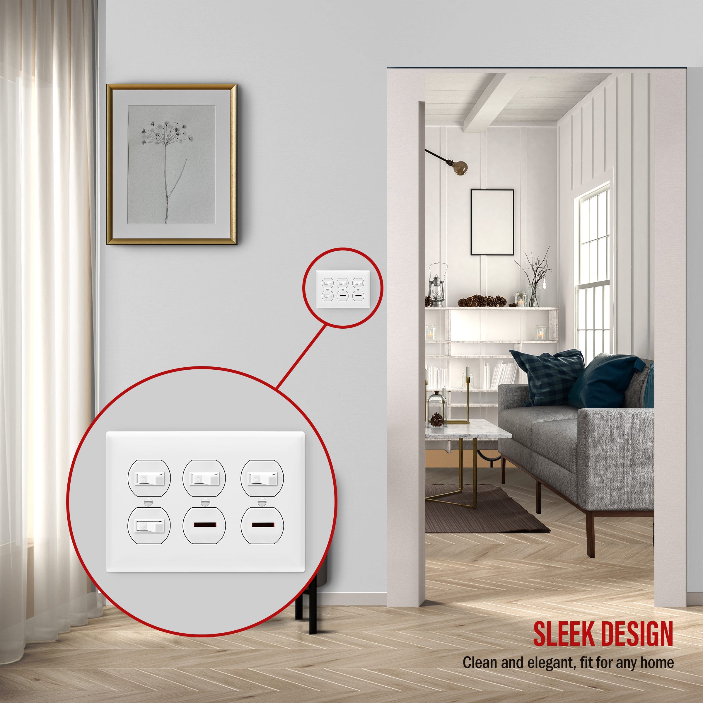 Enerlites wall plates all feature a sleek, decorative finish and appearance which makes Enerlites wall plates ideal to retrofit any duplex installation for contractors and designers featuring a high-quality product at a low cost. The screws included with this wall plate are pre-painted ensuring the colors will match perfectly giving it a flush look.