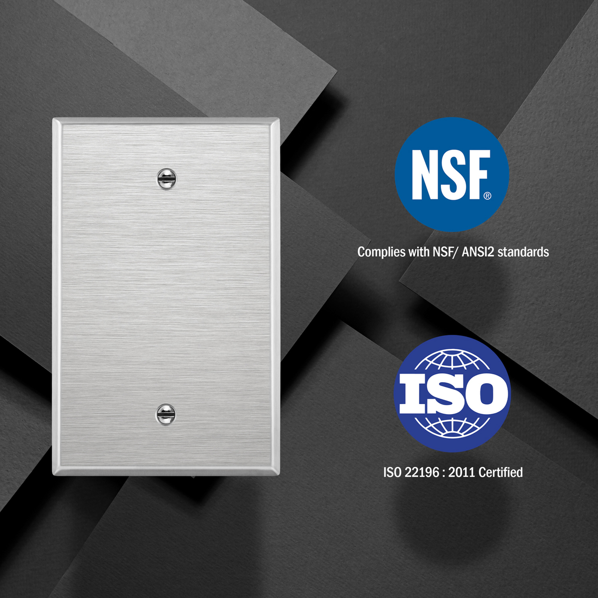 Antimicrobial Blank Metal, Blank Device Cover, Corrosion Resistant, Mid-Size 1-Gang 4.88″ x 3.11″, 430 Stainless Steel